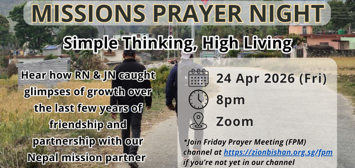 Consider loving and serving new member who are joining the Zion Bishan family – sign up as a table host for the upcoming round of catechism class (starting 14 Feb 2026)! Let us learn to...