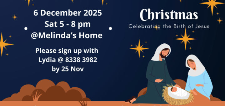 WOZ Christmas… a time to be thankfulCelebrating the Birth of Jesus 6 Dec 2025 (Sat) 5 – 8pm @Melinda’s Home Please sign up with Lydia at 8338 3982 by 25 Nov.