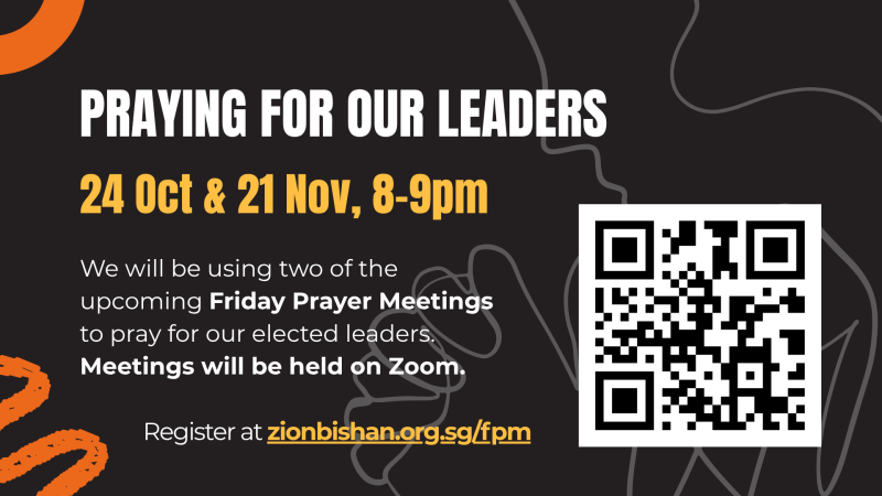 We will be using two of the upcoming Friday Prayer Meetings, 24 Oct & 21 Nov, 8 – 9pm to pray for our elected leaders.