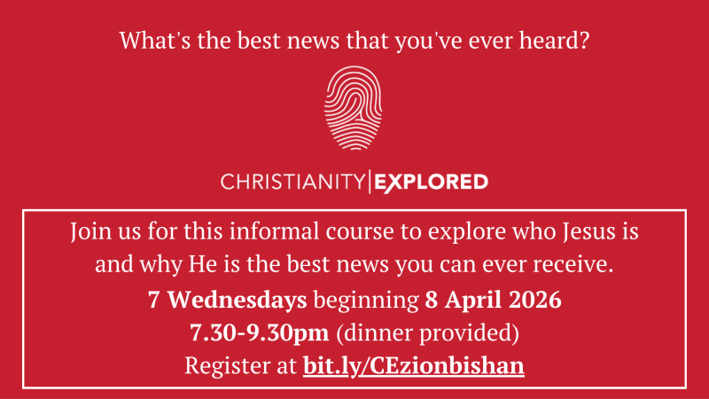 7 Wednesdays beginning from 8 Apr, 7.30 – 9.30pm at Zion Bishan BP Church