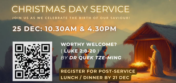 Join us for a time of testimony sharing, worship in songs, and hear from the Lord as we usher in a new year as a church family. 31 Dec 24 (Tues) Main Sanctuary10pm: Testimony Time11pm...